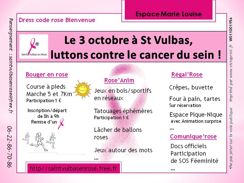 Le 30 juin 2015 est née l’association Saint Vulbas en Rose. Le but de cette association est de promouvoir le dépistage du